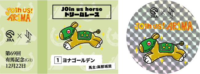 JO1メンバーがそれぞれデザインした、オリジナル馬キャラクター「JOin us horse」の中から3着までにゴールする馬キャラを予想する、競馬を楽しく擬似体験できるコンテンツです。見事予想した馬キャラが3着以内となり的中した方には、予想した「JOin us horse」が描かれたオリジナルステッカーをプレゼント!