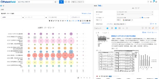Patentfieldは、4つの機能(プロフェッショナル検索・データ可視化・AIセマンティック検索・AI分類予測)を組み合わせて、ワンストップで総合的な検索・分析ができる『AI特許総合検索・分析プラットフォーム』で、これまで高度な知識が必要とされてきた特許調査・分析業務を、初めての方でも使いやすく、かつリーズナブルにご利用いただけるサービスです。