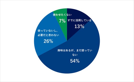 ChatGPTをはじめとしたAIの利用について、「すでに活用している」と回答した方は 20%となり、「興味はあるがまだ使っていない(60%)」と回答した方を合わせると、80%以上の保護者が、AIに対する必要性を感じていることが分かりました。一方、「使っていないし、必要だと思わない」と回答した方は 19%程度に留まり、AIの活用意向は今後さらに広がることが予想されます。