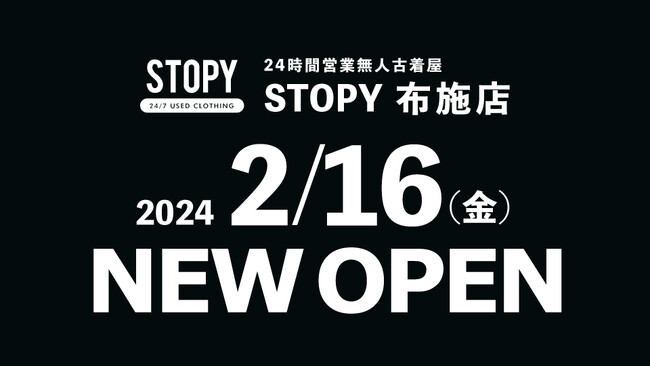 株式会社JAM TRADINGが運営する24時間営業の無人古着屋「STOPY(ストッピー)」が2024年2月16日(金)に東大阪市の近鉄 布施駅から徒歩1分へ2号店を出店。