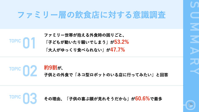 Topic 02 約9割が、子供との外食で「ネコ型配膳ロボット」のいる店に行ってみたい」と回答