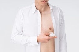 ・使い方は、右手人さし指を指電極に、胸電極を素肌の左乳首の下約5cmに密着させるだけ