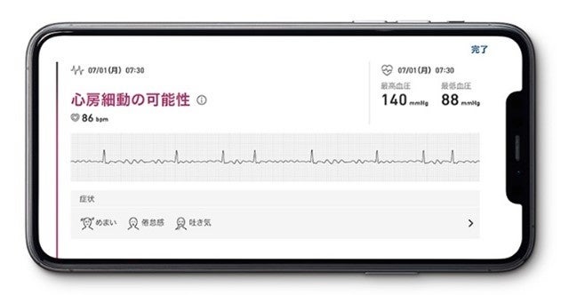・スマートフォンアプリ「OMRON Connect(オムロンコネクト)」で心電図波形を解析、心房細動の可能性など6パターンの解析結果をお知らせ