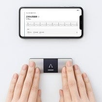 ・本体の指電極に右手人さし指、胸電極を素肌の左胸部にあて、本体ボタン1つで簡単に心電図を記録