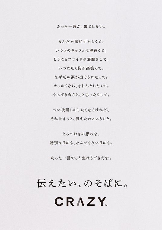 CRAZYは「人々が愛し合うための、機会と勇気を提供し、パートナーシップの分断を解消する」をパーパスに掲げ、主幹事業であるCRAZY WEDDINGにて、2,600組以上の方に結婚式を提供してきました。その中で、結婚式という節目を通して多くの方々が、これまで伝えられなかった感謝やお詫びの気持ち、愛を伝える「勇気」を目の当たりにしてきました。大切な人に本音を伝えることは簡単なことではないからこそ、その背中を押す存在でありたい。そんな想いが企画の発端でした。