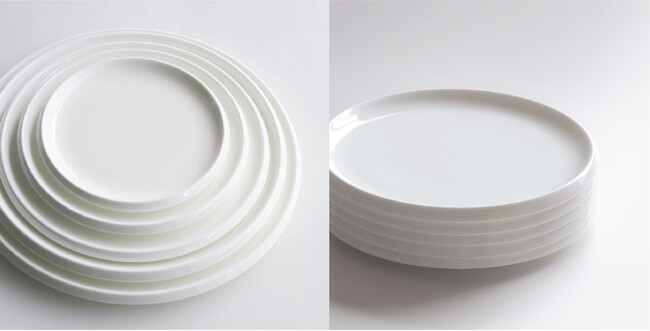 一見、シンプルなフラットプレートでありながら、スタッキングが可能な断面形状、洗練されたディテールを持ったシリーズで、造形的な完成度が高く評価された。ボーンチャイナの素材感とリムの造形が見事な調和を生み出しており、家庭でも、ホテルレストランでも違和感のない汎用性の高さも備えている。また、フラットプレートでは設計の難しいスタッキング機能を、外観に悪い影響を与えずに実現していることも評価のポイントとなった。
