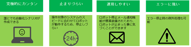 最大の特徴は、 “カンタン”に定型業務自動化ロボットを作成できることです。