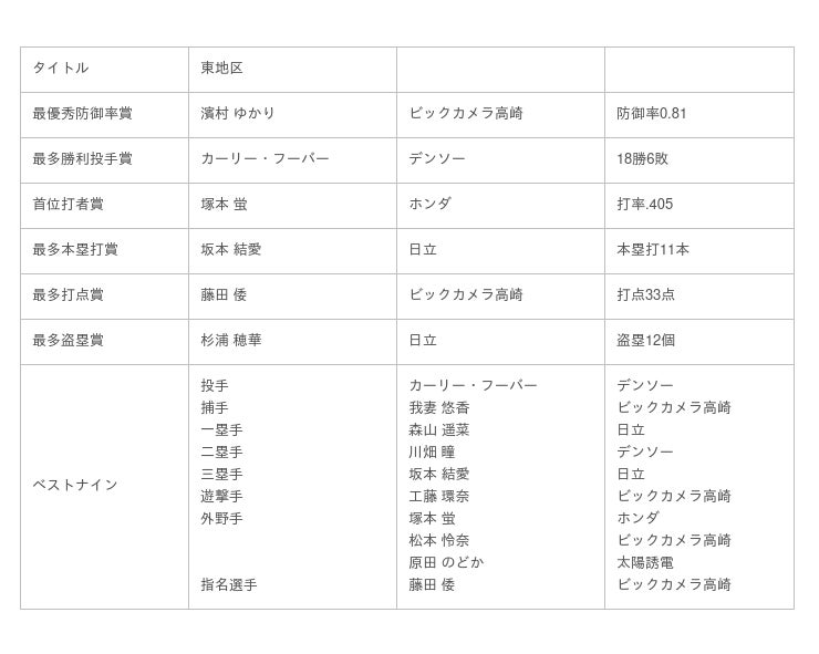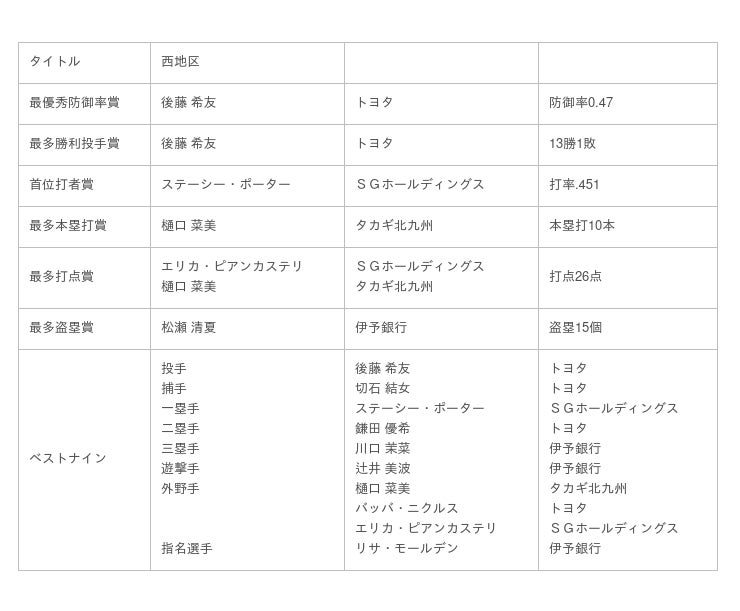 …JD.LEAGUEおよび日本ソフトボール界に対して多大な貢献が見られた選手、団体等に贈られます。