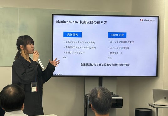 「エンジニアギルド」をコンセプトに、約170名のエンジニア・デザイナーを束ね、受託開発事業や内製化支援事業、プログラミングの教育事業などを企業向けに展開している株式会社blank canvas。