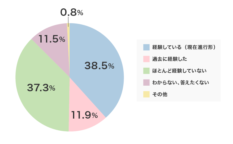 更年期太りが進行中の方は4割近くになり、過去に経験した方を合わせると5割をこえました。