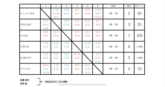 2部:12点マッチ・1セット制・6点でコートチェンジ