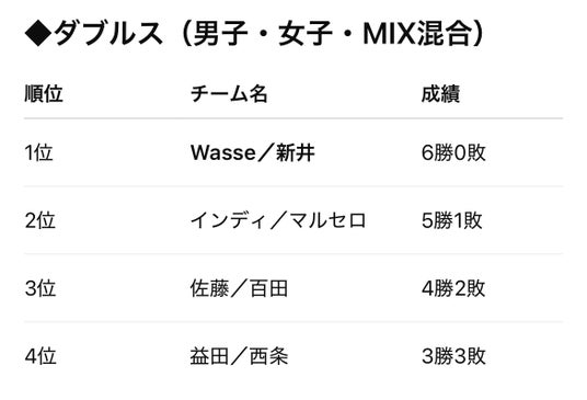 ※ダブルス結果