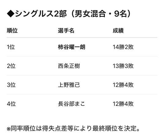 ※2部リーグシングルス結果