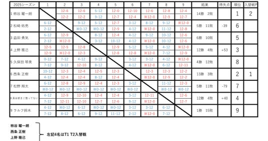 ※1部リーグシングルス結果