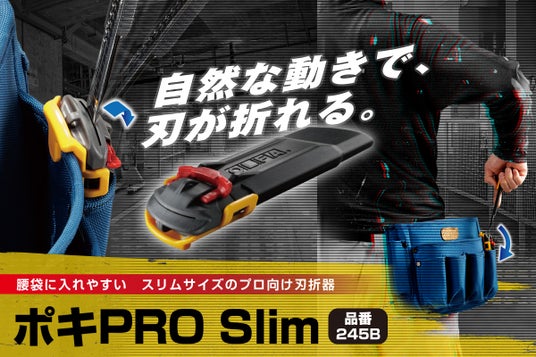 オルファ株式会社(本社:大阪府大阪市、代表取締役:岡田真一)は、自然な動きで刃が折れる、腰袋に入れやすいスリムサイズのプロ向けカッター刃折器「ポキPRO Slim」を、2024年7月12日(金)より発売いたします。