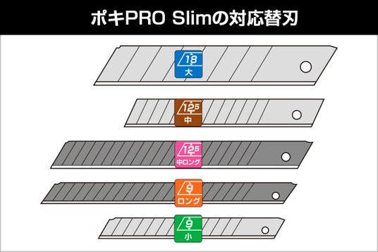 そういった課題を解決するため、プロ向け刃折器「ポキPRO」を2011年に発売しました。今では多くの現場でご使用いただいておりますが、さらなる改良を求めるお声もありました。そこで、余計なものはそぎ落とし、プロの現場で使用する機能をシンプルに追い求めたプロ向け刃折器を目指すべく、自然な動きで刃が折れる機能性はそのままに、腰袋に入れやすいサイズ感の「ポキPRO Slim」を開発いたしました。