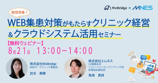 クラウド型医療情報管理共有システム「LOOKREC(※1)」を提供する株式会社エムネス(所在地:広島県広島市、代表取締役社長:阿部 伸一)は、「経営改善!WEB集患対策がもたらすクリニック経営&クラウドシステム活用セミナー」を、2025年8月21日(木)に開催いたします。