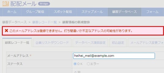 1.管理画面から登録したアドレスにトラップアドレスが含まれていた場合