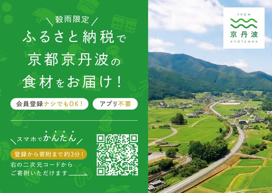 大阪市北区の和食店「穀雨」様にて、京丹波町の食材を使用した特別メニューを期間限定で提供するフェアを開催します。店舗では、産地の京丹波町を応援できる「ふるさと納税」を受付ます。