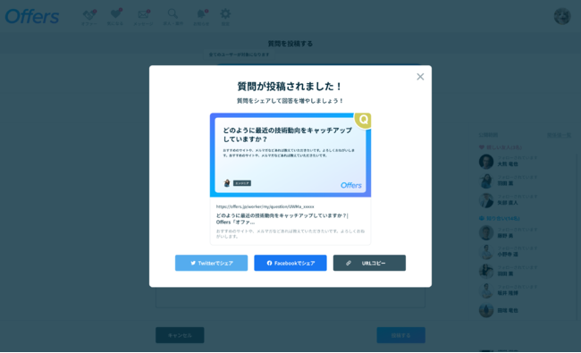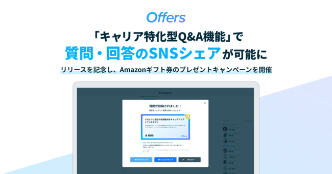 プロダクト開発人材の複業転職プラットフォーム「Offers(オファーズ)」を運営する株式会社overflow(本社:東京都港区、代表取締役: 鈴木裕斗・田中慎 以下、overflow)は、2022年10月18日(火)にプロダクト開発人材が抱えるキャリアの悩みや質問を投稿・回答ができる「キャリア特化型Q&A機能」において、投稿・回答をSNSでシェアできる「SNSシェア機能」を搭載しました。