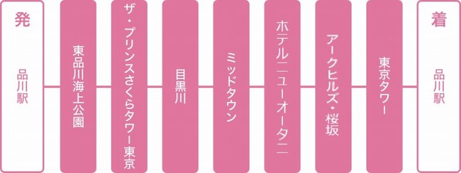 5. 品川駅→東品川海上公園→ザ・プリンスさくらタワー東京→目黒川→ミッドタウン→ホテルニューオータニ→アークヒルズ・桜坂→東京タワー→品川駅