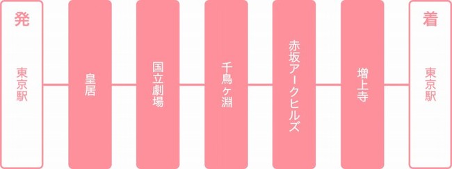 1. 東京駅→皇居→国立劇場→千鳥ヶ淵→赤坂アークヒルズ→増上寺→東京駅