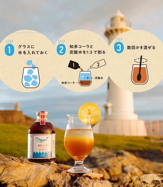 氷の入ったグラスに知多コーラとaarkeで作った炭酸水を1:3で割って知多コーラのフルーティーな味わいと、作りたて炭酸水のはじけるおいしさをお楽しみください。