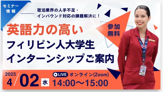 本インターンシッププログラムでは、ホスピタリティ系学部で専門教育を受けたフィリピン人大学生を紹介し、訪日外国人への英語対応強化や接客品質向上に貢献します。実際の導入事例も交えながら、宿泊業界における新たな人材確保の手段をご提案します。