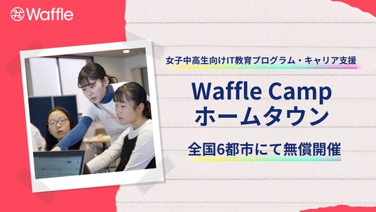 IT分野のジェンダーギャップの解消を目指す特定非営利活動法人Waffle(所在地:東京都渋谷区、以下Waffle)は、女子およびノンバイナリーの中高生を対象にしたIT教育プログラムとキャリア支援を提供する「Waffle Camp ホームタウン」を2024年7月より、全国6都市にて無償開催します。