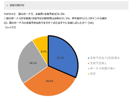 TOPICS1. 夏のボーナス、支給済/支給予定は31.3%