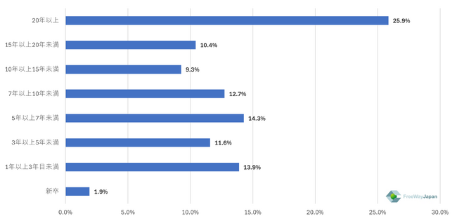Q1. 勤続年数をお答えください。個人事業主の場合は事業を始めてからの年数をお答えください。 SA
