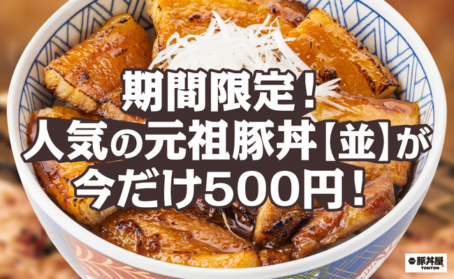 本場・北海道帯広の本場豚丼をボリュームたっぷりに味わえる「元祖豚丼屋TONTON 曙橋店」では、オープン6ヶ月を記念し、人気の「元祖豚丼(豚バラ丼・豚ロース丼)【並】」通常価格780円(税込858円)のところ、7月15日(金)~31日(日)の期間中、限定価格500円(税込)で提供いたします。