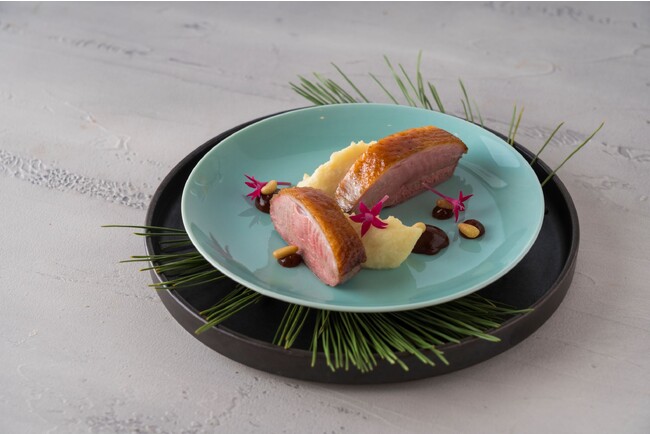 セイボリーのおすすめは、「サステナブル・帆立のたたき クラム・ブルーテソースで」。マセレーション(醸し)する事で酸味と甘みのバランスをとったクランベリーと帆立のたたきの相性は抜群です。また、ボイルした蟹の旨みと柚子の優しい甘さのマリアージュをお楽しみいただける一品「ほぐし蟹のブリオッシュ」は、aリノレン酸が豊富に含まれ、ダイエットや生活習慣病の予防にも効果的と言われるスーパーフードの一種、プルケネチアボルビリス種子油を使用したオリジナルドレッシングとともにお楽しみください。その他、「京都産鴨胸肉のパンシアード」、「スイスグリュエルチーズのタルトレット」など華やかなシェフ自慢のセイボリーをご用意します。