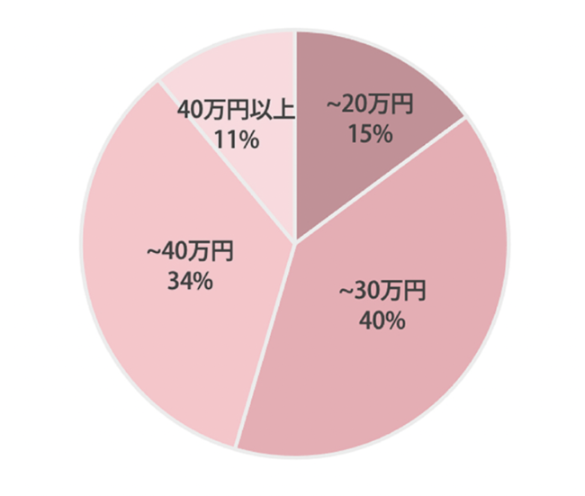 結果は20万円~30万円が40%で一番多く、次いで30万円~40万円が僅差で多い回答となった。