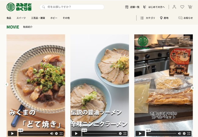 サイト内はオススメ商品の動画やピックアップ商品、新着商品、店舗紹介など、お探しの商品を見つけやすく、購入までの導線もシンプルでわかりやすくなるように画面デザインも大幅変更。今まで以上に使いやすく快適になった『ふるさとめぐり市』。もちろん、ここにしかない新しいアイテムも続々登場、随時更新中です。