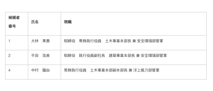 当社らは、かねてより、東洋建設社内から企業価値向上を目指す明確な意思と経営手腕を持った人材を取締役に選任することについては歓迎する旨を公表しております。以下の3名の候補者の方々は、東洋建設の本業である海洋土木事業又は建築事業に関わる深い経験・知見を有していると考えられ、事業の継続性の観点で重要であることに加えて、当社らが提案している東洋建設の企業価値向上策の観点からも必要なスキルセットを有していると判断されるため、賛成の議決権行使をお願いするものです。