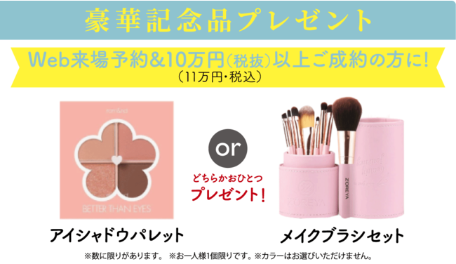 Web来場予約&10万円(税抜)以上ご成約の方に「アイシャドウパレット」もしくは「メイクブラシセット」をプレゼント!