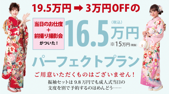 成人式の振袖は、お決まりでしょうか? 着物呉服の「まるやま・京彩グループ」では、2023年以降に成人を迎えるお嬢様に向けて、振袖を扱う店舗を総動員して「GW振袖セール」をスタートいたします。セールの目玉として、すべてコミコミ+さまざまな特典付きの「16.5万円セット」をご用意。これまでのお悩みが吹っ切れる、お得な内容となっていますので、ご注目ください!