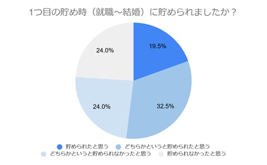 次に、「1つ目の貯め時(就職~結婚)に貯められましたか?」とお聞きしました。