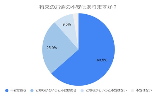 アンケート結果では、「不安はある」と答えた方は63.5%、「どちらかというと不安はある」と答えた方は25%と、多くの方が将来のお金に対して不安を感じていることがわかります。