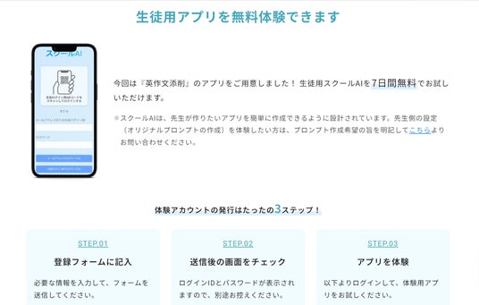 ホームページから『英作文添削』のアプリを7日間無料でお試しいただけます。
