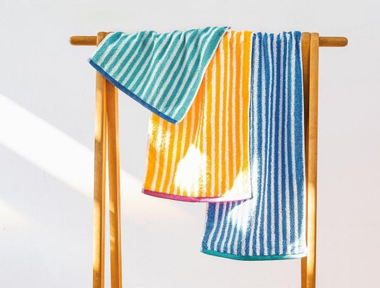 ・商品概要:明るく鮮やかな配色のストライプ柄が気分を上げてくれるタオル。これからの時期のアウトドアでも大活躍。汗も水分もしっかり吸い取ります。吸水性抜群の「1秒タオル」です。