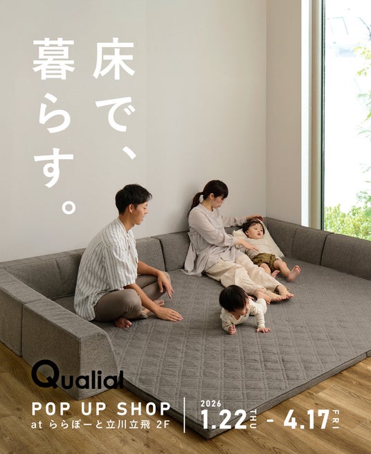 2008年のショップオープンから18年。実店舗を持たず、オンラインを中心に展開してきたクオリアルには、これまでお客様から「商品を実際に見てみたい」という声が多く寄せられてきました。そこで、オンライン上では伝えきれない「サイズ感」や「使い心地」を実際に体験できる場として、東京都立川市・ららぽーと立川立飛にて、初のポップアップショップをオープンします。