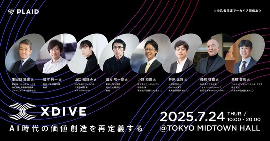 「X DIVE(クロスダイブ)」は、株式会社プレイドが主催するカンファレンスです。初開催となる今回は、「AI時代の価値創造を再定義する」をテーマに、異分野のリーダーたちが一堂に会し、企業変革・顧客体験・データ活用・組織開発など、複数の視点が交差する多様なセッションが展開されます。