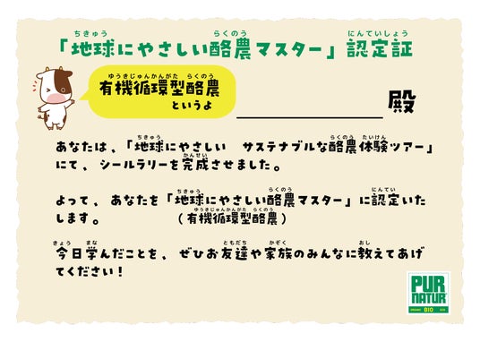 続いて、カネカグループ運営牧場「別海ウェルネスファーム」で実践している有機循環型酪農に触れながら、酪農家の仕事や、サステナブルな酪農について理解を深めていきました。会場には、実物サイズの牛のパネルや牛の糞からできた堆肥を展示する等、子どもたちが有機酪農を知り、身近に感じられる工夫を行いました。子どもたちは有機循環型酪農のサイクルを学べるシールラリーにも挑戦し、「オーガニック食品を選ぶことがSDGsにつながる」ことを体験しながら学べる機会となりました。