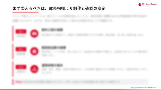 資料内では制作を安定稼働させるための解決ステップを体系化しています。基本パターンの決定から構成のシンプル化、確認手順の固定化という順序で体制を整える手法に加え、役割分担や差し戻し基準を網羅した実務的な「標準化チェックリスト」を掲載しました。これにより、制作工程の不備を減らし、成果改善に向けた施策の振り返りに注力できる体制作りが可能となります。
