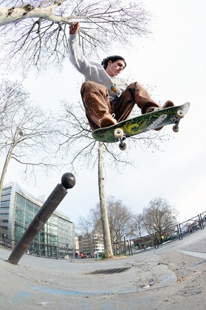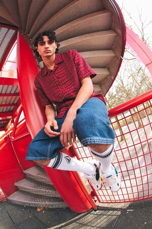 トッドのオリジナルである爬虫類のオールオーバープリントは、新作のバーシティジャケットをはじめ、他のアイテムにも採用されています。すべてのスケートボーダーが想像できる最高のスポットで全速力で良いセッションを行うことが第一に必要であることを思い出させてくれます!