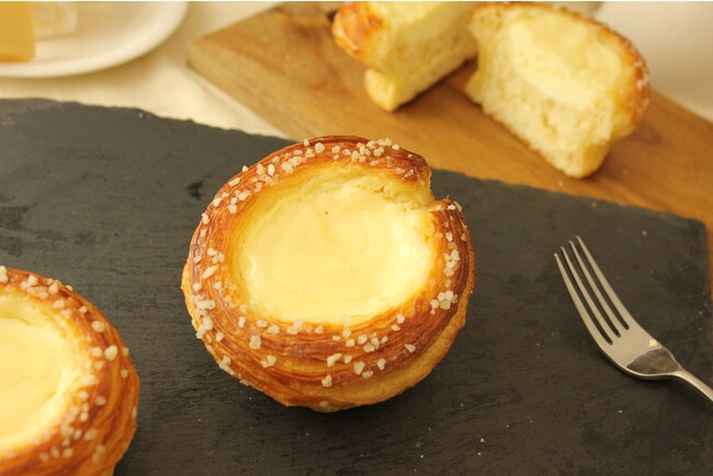 オーストラリア産のクリームチーズと北海道産マスカルポーネチーズを使用したチーズケーキの生地をデニッシュにしぼり、アクセントにパールシュガーをトッピング。爽やかな酸味と優しい甘みがありながらも、チーズの濃厚さもしっかりと味わえる、贅沢なスイーツデニッシュです。