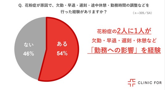対面診療とオンライン診療を展開する「クリニックフォアグループ」(以下クリニックフォア)は、働く花粉症の男女309名を対象に「働く人の花粉症対策に関する調査」を実施しました。