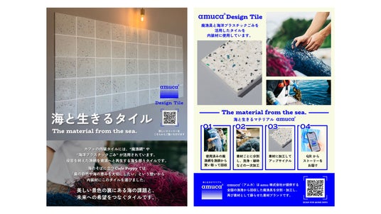さらに店舗では、タイルと併せてamuが提供するトレーサビリティレポートを通じて、廃漁具がタイルへと生まれ変わるまでの背景や、オーナー夫妻の海や地域への想いを知ることができます。こうしたストーリーに触れることで、来訪者はカフェや向島への理解と愛着を深め、amuca(R)タイルは人と地域をつなぐ媒介として、継続的な関係づくりに貢献しています。